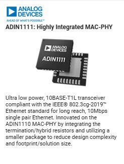 The ADIN1111 from Analog Devices is a highly integrated MAC-PHY device designed for 10BASE-T1L Ethernet communication over single twisted-pair cabling. It enables long-reach Ethernet connectivity (up to 1 km) in industrial and building automation environments, where traditional Ethernet cabling is impractical or cost-prohibitive.