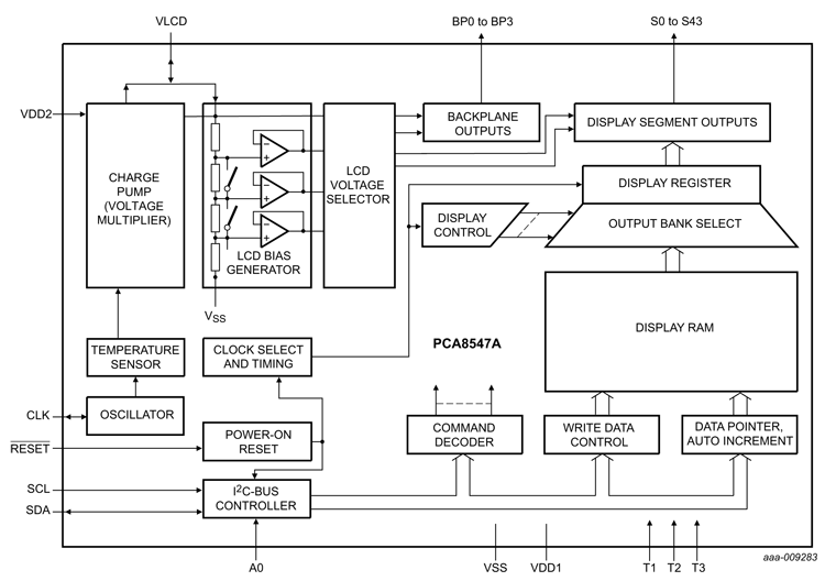 PCA8547: Automotive 44 x 4 LCD segment driver with on-chip charge pump and on-chip temperature sensor