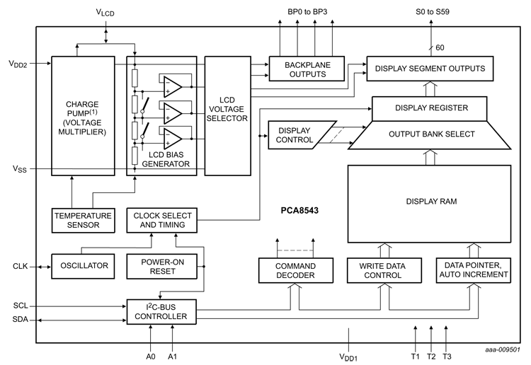 PCA8543: Automotive 60 x 4 LCD segment driver with on-chip charge pump and on-chip temperature sensor