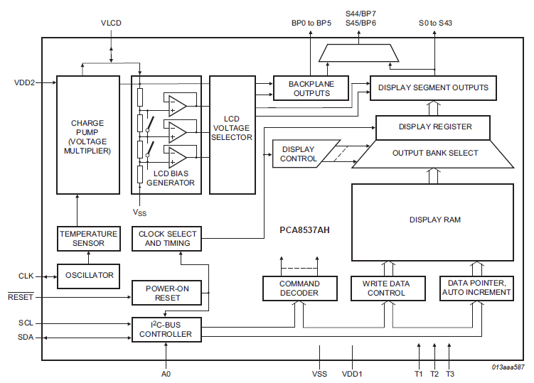 PCF8537 & PCA8537: 44 x 8 LCD segment driver with on-chip charge pump and on-chip temperature sensor
